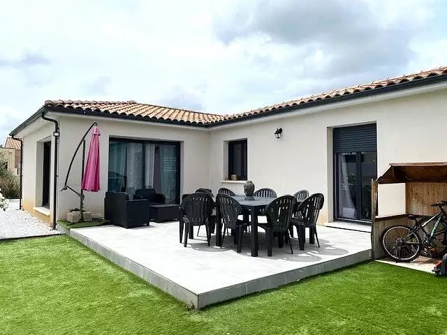 Entre Pézenas et Clermont proche Axe A750 venez découvrir cette jolie villa de plain pied composée d'un séjour salon cuisine ouverte équipée, cellier buanderie, 3 chambres dont une avec dressing, wc indépendant, salle de bains double avec wc.