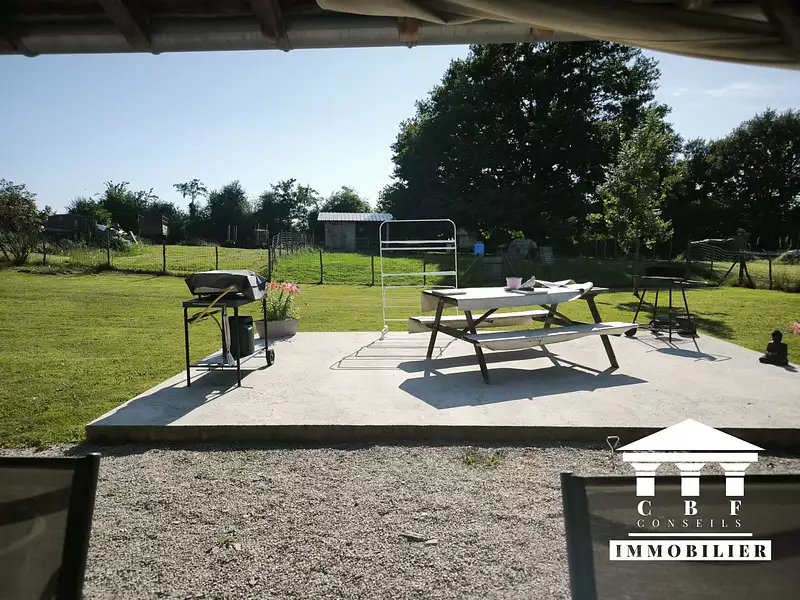 Le bien dispose également de nombreuses dépendances : terrasse à l'arrière donnant sur le jardin avec cuisine d'été, remises, ateliers, garages, et combles aménageables, offrant de multiples possibilités d'aménagement ou de stockage.