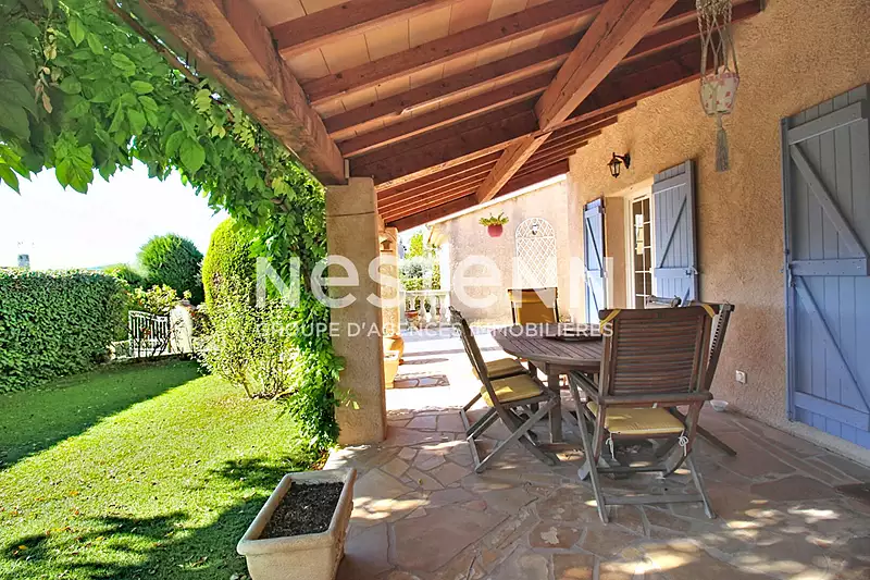 A VENDRE sur la commune de Draguignan. Dans un quartier calme et résidentiel, cette belle villa de près de 114 m² vous séduira par son cadre paisible. Elle est implantée sur un agréable terrain plat et clos de 693 m², parfaitement entretenu. Au rez-de-chaussée, l'entrée s'ouvre sur un vaste séjour lumineux offrant un bel espace de vie convivial, une cuisine indépendante aménagée et équipée, deux chambres, un dressing, complètent ce niveau, ainsi qu'une salle d'eau moderne, un WC indépendant et une buanderie fonctionnelle. A l'étage, un espace bureau en mezzanine mène à une chambre de 12,5 m² disposant de sa propre salle d'eau avec WC et d'un solarium privatif, idéal pour profiter du soleil en toute tranquillité. A l'extérieur, vous apprécierez le jardin clos et soigné, agrémenté d'une piscine de 9 x 4 mètres parfaite pour les moments de détente. Un grand garage de 30 m² ainsi qu'un cabanon de rangement viennent compléter l'ensemble. Cette villa offre de nombreuses prestations de confort, telles que la climatisation réversible, le double vitrage et un portail automatique. L'ensemble est en très bon état général, prêt à accueillir ses nouveaux propriétaires. Emilie CAROVANI (EI) Agent Commercial - Numéro RSAC : 892 748 658 - DRAGUIGNAN.