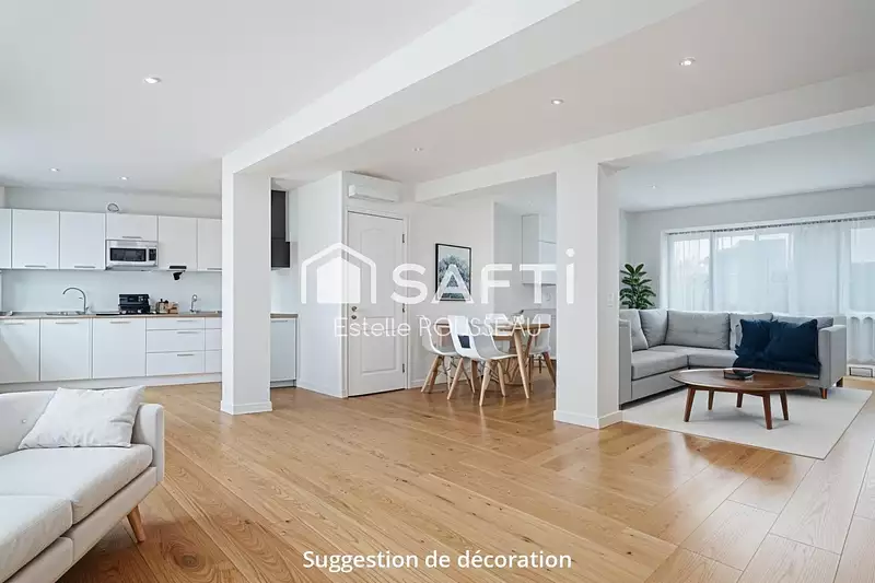 Située dans le quartier recherché de la Varenne à Saint-Maur-des-Fossés, cette maison de ville de 114 m² (120 m2 au sol) vous offre un cadre de vie familial agréable et pratique: à 400 m des Bords de Marne, proche des écoles, lycées, collèges et crèches, proche du bus 111 et à 8 mn à pied du RER A. Le rez-de-chaussée se compose d'un grand espace de vie de 48 m² style loft: une cuisine équipée ouverte sur un double séjour traversant et lumineux doté d'un parquet massif en bâtons rompus, une buanderie, un espace bureau et un WC avec lave-mains. Au premier étage, deux chambres dont une avec placards, une suite parentale avec salle d'eau et WC, ainsi qu'une salle d'eau supplémentaire avec WC répondent aux besoins d'une famille. Les combles non aménagés offrent un potentiel d'extension. La maison dispose de beaux volumes intérieurs, d'un jardin cosy de 50 m2, d'une terrasse, d'une cave, et de deux cabanons/ local vélo offrant un espace extérieur appréciable. Double vitrage, radiateurs électriques thermostatiques, ballon d'eau thermodynamique, parquet massif au sol, tout est pensé pour le confort et la qualité de vie au quotidien. Le stationnement est facile au pied de la maison et un box à louer est disponible à proximité immédiate.