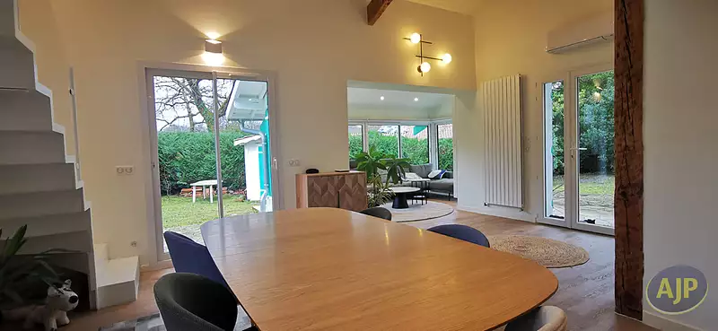 En plein coeur du pittoresque et très apprécié village de Taussat, à quelques enjambées du port de plaisance des Fontaines, cette maison allie le charme traditionnel des landaises à des aménagements modernes, offrant un espace de vie confortable et très élégant. Vous serez immédiatement séduits par la luminosité de cette maison grâces aux nombreuses baies vitrées qui laissent entrer le soleil! Rénovée avec énormément de goût en 2023, ( compris l'isolation des combles donnant à la maison un excellent DPE en C!), vous n'avez plus qu'à y poser vos valises. Vous profiterez ainsi d'un salon séjour très ensoleillé avec une vue dégagée vers le jardin grâce à de belles ouvertures vitrées, une grande cuisine ouvrant vers la terrasse très bien équipée notamment d'une belle cave à vin intégrée, Deux chambres dont une ouvrant vers la terrasse ainsi qu'n WC et une très jolie salle d'eau complètent ce niveau en rdc. Un bel escalier design vous amène vers l'étage ou vous profiterez d'une mezzanine pouvant accueillir un bel espace bureau ou salle de jeu ainsi que d'une 3ème chambre et d'une très jolie salle de bains avec douche et baignoire. La pièce de vie et l'étage sont équipées de climatisations réversibles pour votre confort . En extérieur, vous profiterez d'une agréable terrasse couverte pour déjeuner à l'abri du soleil, d'un garage attenant de 22 m² ainsi que d'un abri de jardin. Le jardin est joliment arboré, avec de nombreux végétaux qui sont arrosés par un puits foré. L'environnement de cette maison est très calme et le quartier très recherché et surtout vous êtes à quelques minutes à pied de la plage et de tous les commerces de proximité ainsi que pharmacie et cabinets médicaux. Venez donc la découvrir sans tarder! (3.10 % honoraires TTC à la charge de l'acquéreur.)Afficher plus