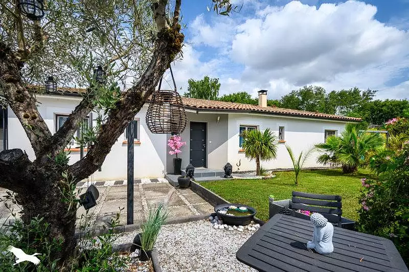 Maison T5, comprenant entrée, séjour, cuisine ouverte équipée, cellier, wc, dégagement, 4 chambres dont une avec salle d'eau, buanderie. Garage attenant. Le tout sur une parcelle clôturée d'environ 842 m² avec piscine et puits. La pièce de vie donne directement sur l'espace piscine bar. A deux pas du centre ville et des commodités. Proposition d'aménagement virtuel non contractuelle en dernière photo.