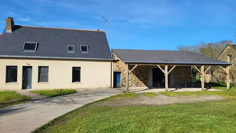 Dépendances attenantes et préau pour garer les voitures sur une belle parcelle de 1560m2 arborée.