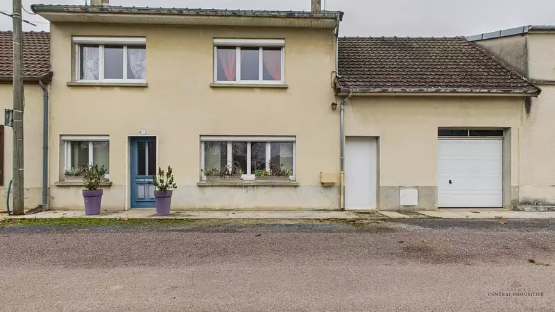 Proche Romilly sur Seine dans la marne. Maison comprenant : entrée su séjour salon carrelé avec cheminée, cuisine aménagée équipée carrelée accès véranda chauffée et parquetée, Arrière cuisine carrelée avec placards et coin buanderie, salle d'eau carrelée avec wc. À l'étage : palier parqueté, 2 chambres parquetées dont une avec placard, grenier aménageable. Chauffage central gaz de ville et électrique. Double vitrage. Volets roulants électriques. Cave. Garage. Terrain clos de 349m².