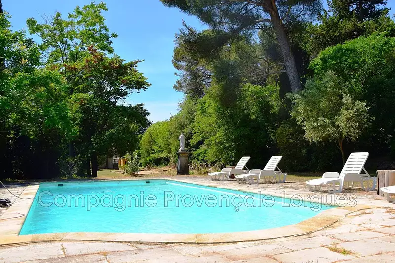 La propriété est composée du château, d'une maison de gardien, d'un bâtiment comprenant garages et ateliers, et une belle et grande piscine au milieu du parc de 7.000m2 environ.