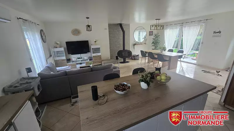Maison Axe Louviers / Evreux / Le Neubourg, vivable de plain pied, sur sous-sol total. située à 7 min d'Acquigny Comprenant séjour/salon de 40m² avec poêle à granulés, cuisine aménagée et équipée, 3 chambres possibilité 4, bureau, salle de bains, wc. Jardin d'environ 1600m². Terrasse. Au calme sous-sol total DPE D Prix TTC et Honoraires à charge vendeur TTC Prix moyens des énergies indexés au 01/01/2021 (abonnement compris).Montant estimé des dépenses annuelles d'énergie pour un usage standard : entre 1 330 € et 1 860 € par an. Les informations sur les risques auxquels ce bien est exposé sont disponibles sur le site géorisque: