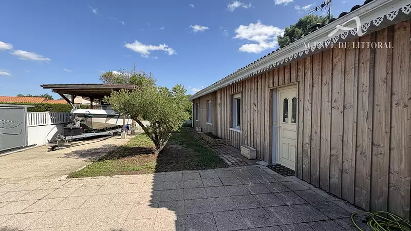 L'Agence du Littoral vous propose cette maison de plain-pied située dans un secteur très calme et arboré comprenant une spacieuce entrée, un salon séjour lumineux avec cheminée, une cuisine équipée/aménagée, 3 chambres dont une suite parentale avec salle d'eau et wc, un salle d'eau, un wc indépendant, une buanderie, un cellier, un garage attenant de 17 m2. Le tout édifié sur un terrain clos et piscinable d'environ 600 m2.
