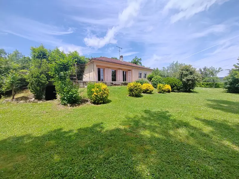 Maison de plain-pied en arrivant avec grand parc arboré, proche du Leclerc d'AUCH avec garage de 60 m² et équipements économes en énergie – À deux pas des commodités