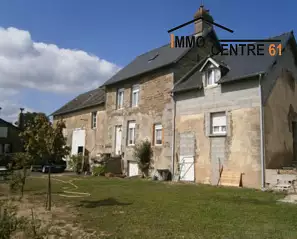 Rives d'Andaine - Haleine : Maison de village de 115m2 offrant au rez-de-chaussée un salon, une cuisine un bureau. 1er étage : 3 grandes chambres et une salle d'eau. La maison se trouve sur 810m2 de terrain clos. Grand garage (70m2) avec grenier, cave et vide sanitaire. Chauffage électrique et poêle à fioul. Puits. Tout à l'égout. Ref. JF80. Prix: 148 900 € FAI IMMO CENTRE 61 - LA FERTE MACE & CARROUGES - TEL: 02.33.140.160