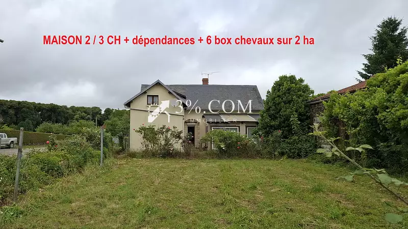 ***Maison en retrait de rue (fond de jardin derrière porte cochère), terrasse avec bbq, veranda, potager, grand verger avec nombreux fruitiers, bâtiments - pâtures avec abris, accessibles par le jardin ou directement par la rue.