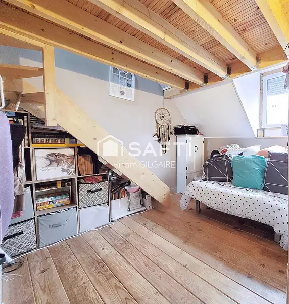 À l'étage, on retrouve un palier desservant quatre chambres dont deux en mezzanines.