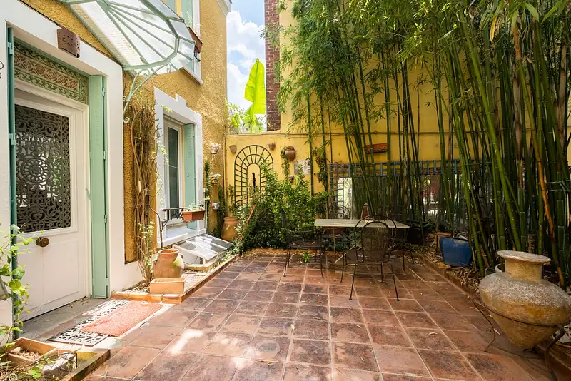 Nichée dans un écrin de verdure insoupçonné, au pied du RER B Arcueil-Cachan, et à deux pas du futur métro ligne 15 et des commerces, cette maison d'artiste de style andalou de 115 m² au sol (110 m2 habitables), non mitoyenne, déploie ses charmes sur trois niveaux, entre inspirations méditerranéennes et jardin zen.