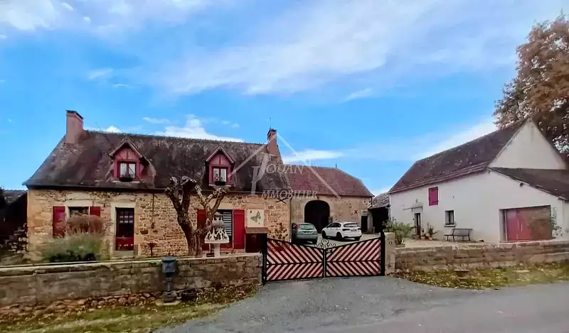 Sur la commune de Couleuvre, le long d'une petite route de campagne, se trouve cette propriété typique du Bourbonnais avec une maison d'habitation, une grande grange (avec panneaux photovoltaïques sur le toit) et une deuxième habitation style gîte. Le tout sur un grand terrain avec jardin, petit verger et piscine (hors sol) puis un grand pré idéal pour chevaux/poneys et un chenil pouvant accueillir 3 chiens.