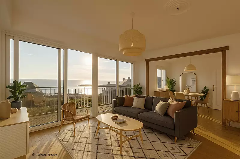 Au coeur du petit port de Doëlan, Villadici vous présente cette maison idéalement située, offrant une exposition remarquable face à l'océan. La maison bénéficie aujourd'hui d'une ouverture visuelle très large depuis le rez-de-chaussée, sous réserve de l'issue de la procédure en cours concernant un projet hôtelier voisin, ce qui justifie son positionnement tarifaire actuel. Cette solide maison néo-bretonne, à rénover, s'élève sur trois niveaux et offre de nombreuses possibilités d'aménagement. Le sous-sol total, d'environ 75 m2, comprend un garage, une chaufferie et une grande pièce supplémentaire. Au rez-de-chaussée, une entrée mène à un double séjour d'environ 30 m2 ouvrant sur un long balcon orienté vers l'océan. On y trouve également une cuisine, deux chambres, une salle d'eau et un wc séparé. A l'étage, un palier dessert deux chambres, dont une de 31 m2 avec ouverture vers la mer, ainsi qu'une salle d'eau. La maison offre un potentiel réel pour reconfigurer les espaces, agrandir ou repenser la distribution selon votre projet. Des visuels de projection réalisés par un designer d'intérieur permettent d'imaginer une rénovation harmonieuse. Située à proximité immédiate du port, du sentier côtier et de l'ensemble des paysages remarquables de Doëlan, cette propriété représente une occasion rare dans un environnement très recherché. Les informations sur les risques auxquels ce bien est exposé sont disponibles sur le site Géorisques : https://www.georisques.gouv.fr/ Pour tout renseignement, merci de contacter Thibaud Kempen au 06.07.79.57.38 Agent Commercial Indépendant (E.I) RSAC 523 682 268 (4.04 % honoraires TTC à la charge de l'acquéreur.) THIBAUD KEMPEN (EI) Agent Commercial - Numéro RSAC : 523 682 268 - Quimper.