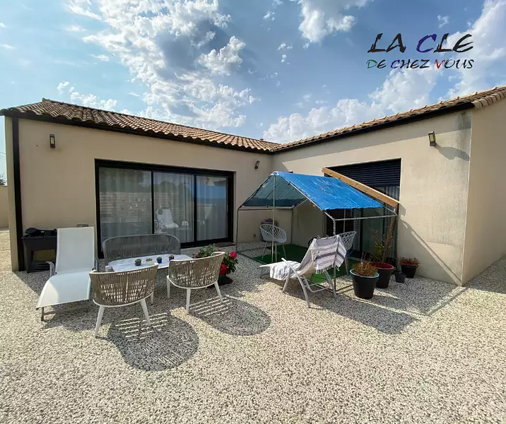 EXCLUSIVITE! Ce superbe pavillon de plain-pied se compose d'une entrée, un spacieux séjour, une cuisine équipée, une buanderie, 3 chambres dont 1 avec bureau, dressing et salle d'eau privatifs, une salle d'eau et des toilettes.