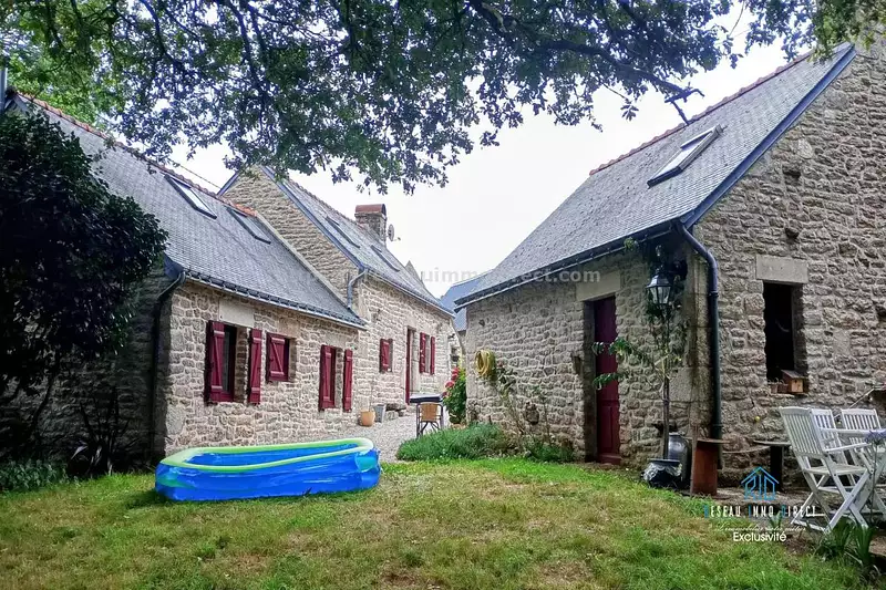Charmante maison bretonne de 115 m² en pierres naturelles, nichée au calme dans un petit hameau en campagne. A seulement six minutes du centre bourg de Le Faouet et de sa place modernisée des halles, commerces, écoles, ou encore associations sportives et culturelles.