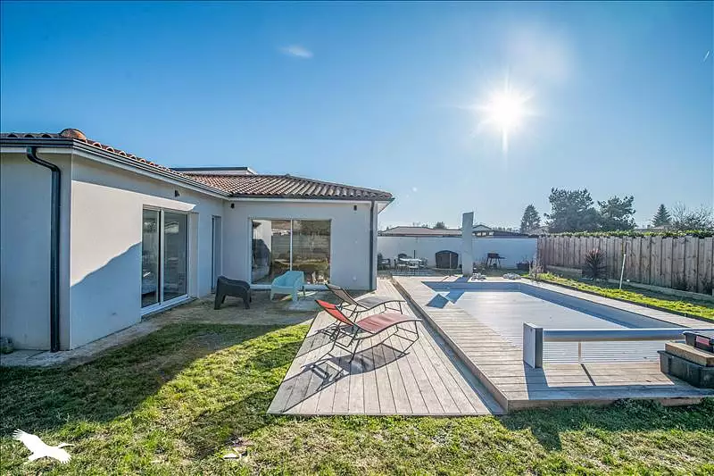 Dans un quartier calme, maison contemporaine de 2021 avec piscine offrant un cadre de vie moderne et agréable. Vous serez séduit par son espace de vie spacieux et lumineux avec cuisine ouverte équipée, ses 3 chambres dont 2 avec placards et ses 2 points d'eau. L'ensemble sur une parcelle de 520 m² avec 2 places de parking.