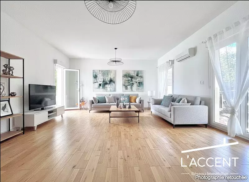 Le coeur de la maison est un séjour vaste et lumineux, où la lumière danse du matin au soir.