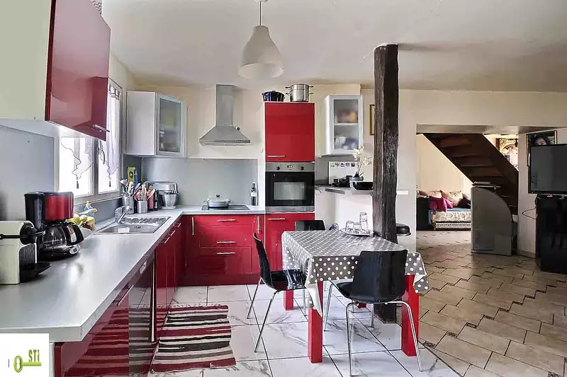 En exclusivité ! Située à ROGNY LES SEPT ECLUSES, venez découvrir cette maison de ville habitable de plain-pied comprenant au rez-de-chaussée : cuisine aménagée ouverte sur salle à manger, séjour avec cheminée insert et son accès terrasse, chambre, wc, patio desservant salle d'eau et buanderie. A l'étage : deux chambres dont une avec dressing, bureau, salle d'eau avec wc. Grande Terrasse avec barbecue, atelier avec électricité et eau. Double vitrage PVC et simple vitrage bois. Chauffage bois. Garage non attenant d'environ 20 m2. Le tout sur un terrain clos d'environ 650 m2 relié au tout à l'égout. Contactez-nous pour plus de renseignements. 'Les informations sur les risques auxquels ce bien est exposé sont disponibles sur le site Géorisques http://www.georisques.gouv.fr'.