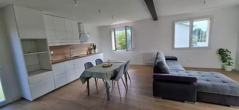 Maison des années 60 totalement rénovée INTERIEUREMENT: isolations sols, murs et plafonds, fenêtres neuves oscillo-battantes, cloisons, murs, cuisine neuve , etc.