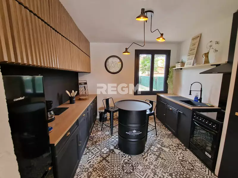 A vendre à Saint laurent de la salanque, villa totalement rénovée , comprenant au rdc : entrée , cuisine fermée équipée matériel neuf , salon et séjour avec cheminée fonctionnelle , garage , terrasse , chauffage équipement neuf air/eau dernier modéle avec production eau chaude , à l étage , entrée , 3 belles chambres , 1 salle de bains , fenétre double vitrage pvc , rénovée en 2025 vendue meublée aucun travaux à prévoir , au centre ville dans un endroit calme avec tous les commerces à proximité ,centre commercial claira à 5 mn, perpignan et mer a 10 mn , sur un terrain de 450 m environ en 4 faces ,