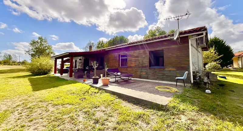 Sur une parcelle de plus de 10 000 m² dont une partie boisée, à la lisière du Gers et des Landes, cette maison de plain-pied est composée d'une cuisine ouverte sur un espace de vie généreux avec insert et un accès à la terrasse couverte donnant sur le jardin, de quatre chambres, d'un grand cellier, d'une salle d'eau et d'un wc.