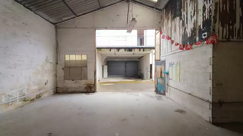 CENTRE de Sainte Pazanne, ensemble immobilier composé: - Maison édifiée en 1967 avec palier donnant sur une cuisine, un salon-séjour, une chambre, une salle de bains et WC. A l'étage : 2 chambres une salle de bains avec WC et grenier. - Un HANGAR d'environ 150 m2 - Une DÉPENDANCE de 50 m2 environ, 3 pièces à rénover Le tout sur une parcelle de 450 m2. Prévoir travaux. (2.93 % honoraires TTC à la charge de l'acquéreur.)