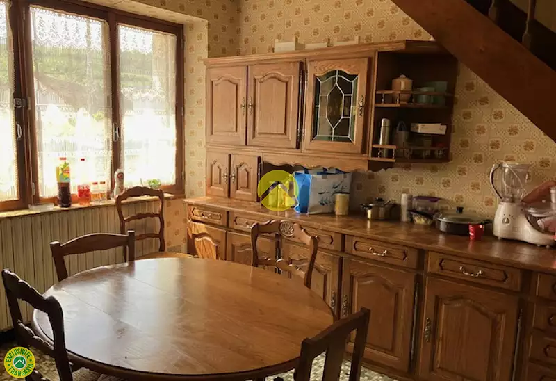 Transaxia SANCERRE, OMBREDANE Sandrine FOURNIERE Martine  (EI) 06.14.64.00.92 - 06.61.13.77.04 - RCS Bourges N°528619588 - A 5 min de Sancerre, dans village vigneron avec commerces de proximité, nous vous présentons cette vaste maison de  bourg indépendante de 115 m²  comprenant au RDC cuisine aménagée, salon, buanderie, WC. A l'étage 3 chambres, bureau, salle de bain, WC. et grenier au-dessus. Un cellier attenant et une  grange (37 m²) attenante complète le bien.  Petit jardin arboré avec belle terrasse et barbecue. Réf : 107314 .