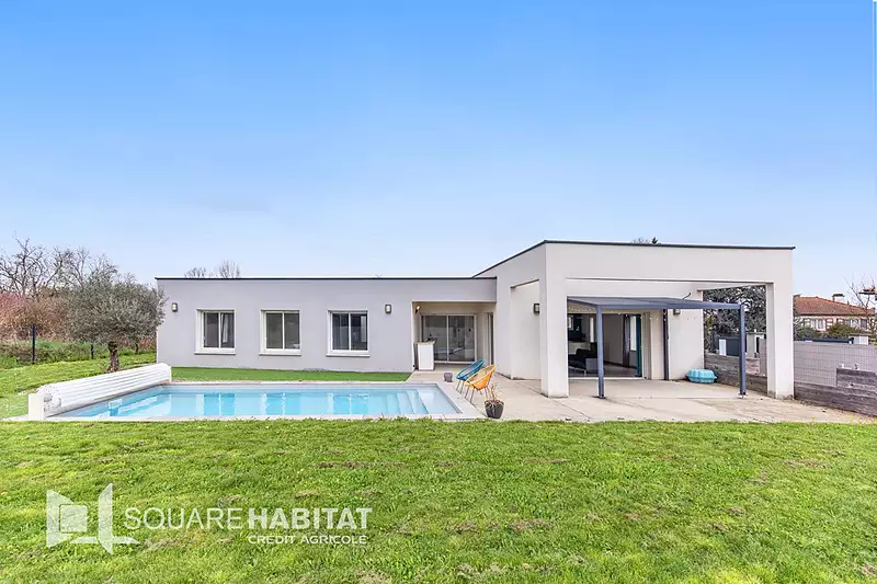 Située à Bordères-sur-Echez, cette maison de plain-pied de 115m², construite en 2018, vous offre un cadre de vie moderne et fonctionnel. Elle comprend une entrée ouverte sur le grand séjour lumineux avec une cuisine ouverte , donnant un accès direct à la terrasse et au jardin. Vous y trouverez également une suite parentale d'environ 21m² avec dressing et salle d'eau privative, ainsi que deux chambres supplémentaires d'environ 10.5m² chacune, une salle de bains et un toilette indépendant. La buanderie communique avec le double garage fermé de 35m², offrant un espace de stockage pratique. A l'extérieur, vous pourrez profiter d'une piscine creusée de 8x4 mètres, au sel, idéale pour vos moments de détente. Le terrain de 2000m² est entièrement clôturé et dispose d'une grande terrasse avec pergola, parfaite pour profiter de l'extérieur. Le chauffage est assuré par une pompe à chaleur avec climatisation réversible, et l'eau chaude est fournie par un ballon. thermodynamique, garantissant confort et économies d'énergie. Un bien rare qui combine confort, modernité et emplacement privilégié ! Pour plus d'informations ou pour organiser une visite, contactez-nous !