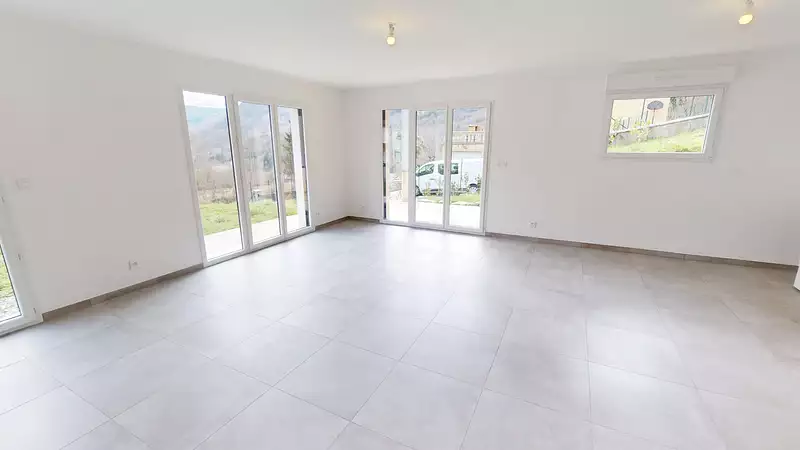 Magnifique maison neuve de 106 m² sur une belle parcelle de terrain de 886 m², au calme au fond d'une impasse, avec vue imprenable et à seulement 5 minutes de la gare ( 35 minutes de Lyon Part Dieu ).