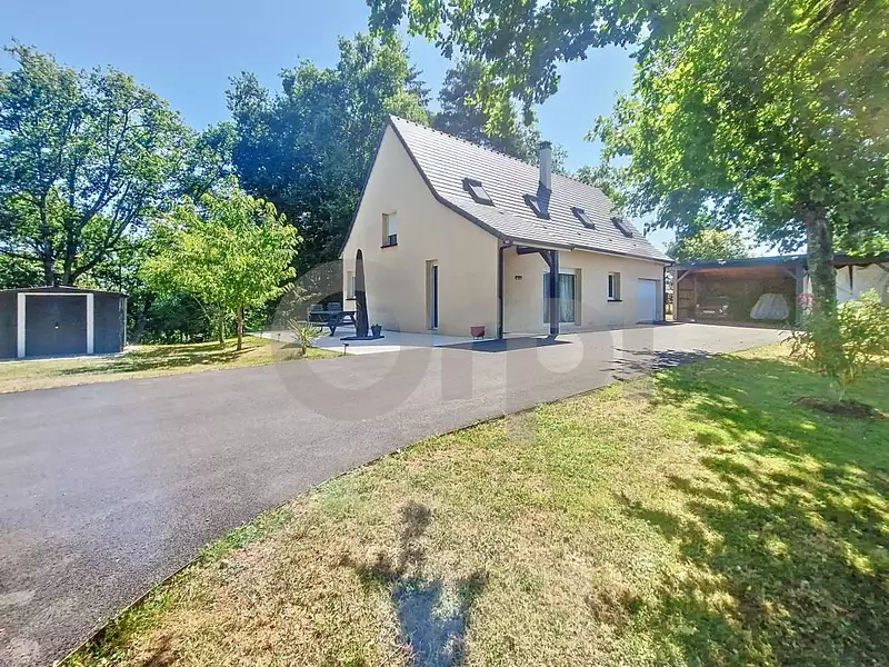 Vous recherchez une maison de plain pied, récente, au calme et qui réponde aux normes actuelles ? ORPI TERRASSON vous propose cette construction de 2010, sur un terrain naturellement boisé de plus de 3880 m². Le logement comprend un espace de vie de plus de 58 m² avec son entrée ouverte sur séjour et sa cuisine équipée, une chambre ou bureau et sa salle d'eau privative. Au dessus, un dégagement pouvant faire office de bureau dessert deux chambres spacieuses avec leur dressing et salles d'eau avec toilettes. Chauffage par poêle à granulé récent. Attenant, garage pour un véhicule.et abri voiture supplémentaire pouvant accueillir 3 autres véhicules. Les abords sont aménagés avec voies de circulation et terrasses bétonnées . Le terrain en partie clôturé en grillage et portail automatique. L'ensemble est en parfait état . Il n'y a qu'à poser ses bagages. Située en campagne, à environ 15 mn en voiture de Terrasson la Villedieu. On vous attend !