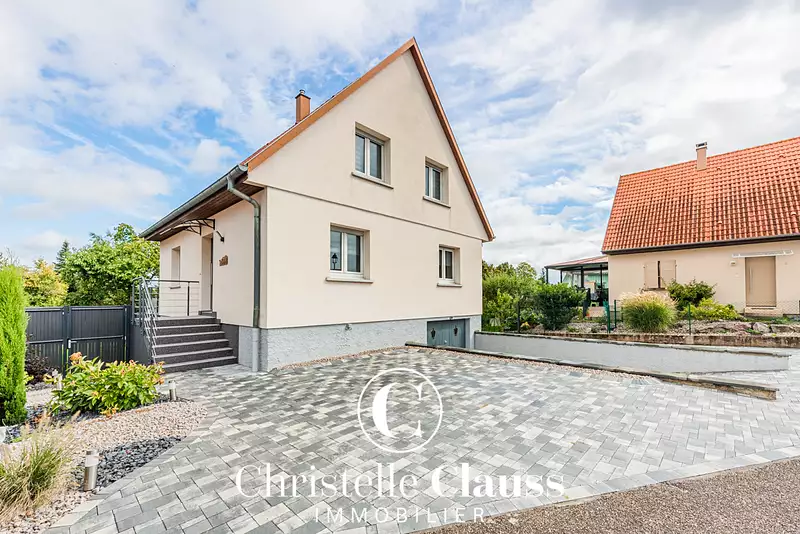 WILLGOTTHEIM - KOCHERSBERG Caractéristiques principales : - 4/5 pièces : Cette maison de 115m2 au sol et 105m2 habitables sur un terrain de 482m2 offre une entrée spacieuse/espace bureau, une cuisine équipée, un salon/salle à manger de 30m2 et un wc au rez de chaussée. Au premier étage 3 belles chambres ( 17 , 11 et 14,5 m2 ) , du rangement et une salle de bain avec baignoire douche et wc. Les combles sont actuellement utilisés en espace de stockage mais aménageables. - Cette maison construite en 1992 a été entièrement rénovée en 2019, garantissant une qualité de finition exceptionnelle et un certain confort. - La maison est équipée d'un poêle à granulés, une solution de chauffage économique et écologique. - Terrasse de 16m2 et un jardin paysagé de 482m2 ainsi que sa piscine semi enterrée . - Le sous-sol offre un espace de stockage supplémentaire ainsi qu'une buanderie et un garage. Visite virtuelle disponible. Pour une visite, n'attendez plus , contactez nous ! (5.13 % honoraires TTC à la charge de l'acquéreur.)