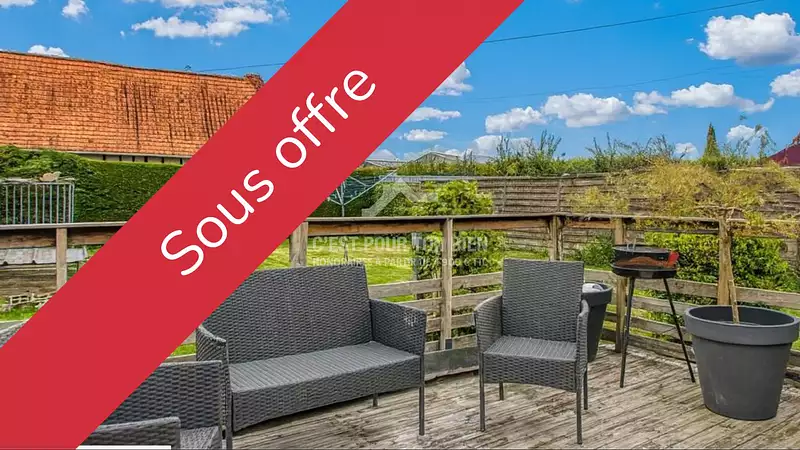 L'Agence des Flandres, C'EST POUR TON BIEN à honoraires fixes (dès 4.900€ tout inclus) vous propose cette maison semi-mitoyenne de 115m² avec jardin, édifiée sur une parcelle de 398 m², située à Winnezeele.