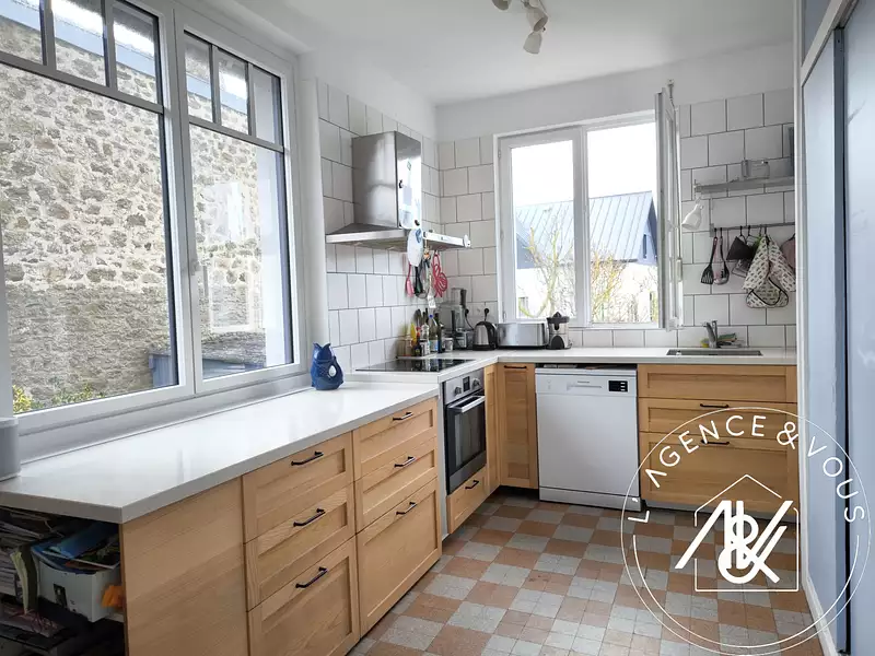 L'Agence & Vous, Mélanie BLANVILLAIN 06 83 09 89 98, vous présente à la vente, à l'abri des regards, au calme, cette maison des années 50 de 116 m2 hab env (134 m2 au sol), au charme atypique, relookée au goût du jour et dotée d'un jardin exposé Sud-Ouest.