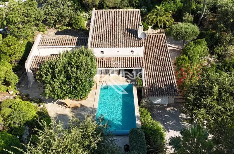Dans un domaine du secteur prisé de Valescure, belle villa implantée sur un terrain arboré de 1800m² environ avec piscine. Son accès se fait au rez-de-chaussée par un patio qui donne sur une entrée, suivi d'un séjour-salon ouvrant sur une terrasse semi-couverte de 35m², une cuisine, une chambre avec placard, une salle de bains et des WC. L'étage offre une suite parentale avec sa salle de bains.