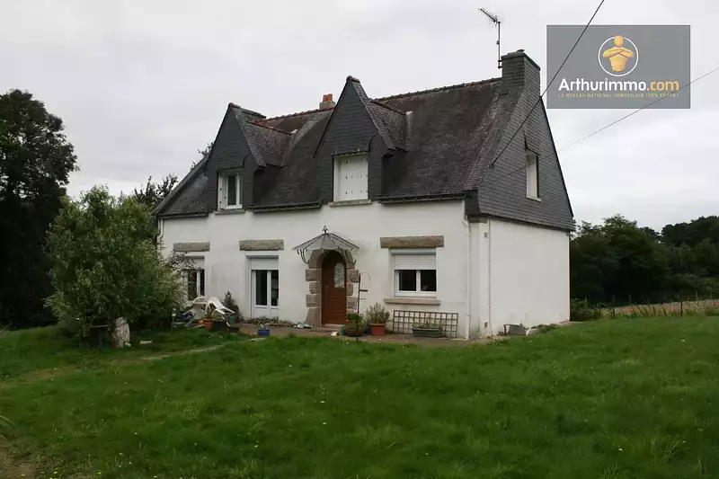 Josselin maison 4 ch. avec terr. 1 600 m² située proche de josselin, dans le haut de st croix coté guegon, maison de 116 m² hab., bien exposée, avec un terrain clos de 1 600 m² (bornage à définir par un géomètre, à la charge des vendeurs). maison avec vie de plain-pied composée au rdc d'une entrée avec couloir, d'une cuisine aménagée et équipée, d'un séjour avec cheminée et insert, d'une chambre, salle de bains, wc et bureau. a l'étage, couloir, 3 chambres (1 avec placard), grenier non isolé. au sous-sol, garage, buanderie/chaufferie. maison actuellement en location 550euros mensuel. il n'est pas possible de mettre fin au bail du locataire à cause de son âge. ref 985 -