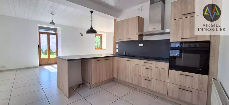 Réf : 2177 - VIRGILE Immobilier Métabief vous propose de découvrir cette maison mitoyenne entièrement rénovée située sur la commune de Jougne, à seulement 5 minutes de la frontière suisse. Elle offre une belle surface habitable d'environ 117 m2 sur un vaste terrain de 895 m2, constructible et divisible. Possibilité de crée un appartement d'une surface d'environ 45m2 avec entrée indépendante ou alors de créer des chambres supplémentaires. Au rez-de-chaussée, profitez d'une entrée accueillante avec cuisine américaine ouverte sur le salon séjour, une buanderie, une chaufferie, un local à bois. Un accès direct et de plain pied à une terrasse exposée plein sud. À l'étage, deux grandes chambres et un grenier aménageable offrent un beau potentiel d'agrandissement. Un garage complète ce bien rare à la vente et si proche de la frontière. Etat des risques naturels sur ce bien sur www.georisques.gouv.fr. CLASSE ENERGIE (D) CLASSE CLIMAT (D) montant des énergies indexés sur 2023 entre 1600 euros et 2100 euros VIRGILE IMMOBILIER CPI 25012020000045026 , caisse de garantie Galian-smbtp No A11065368 pour un montant de 120000 euros