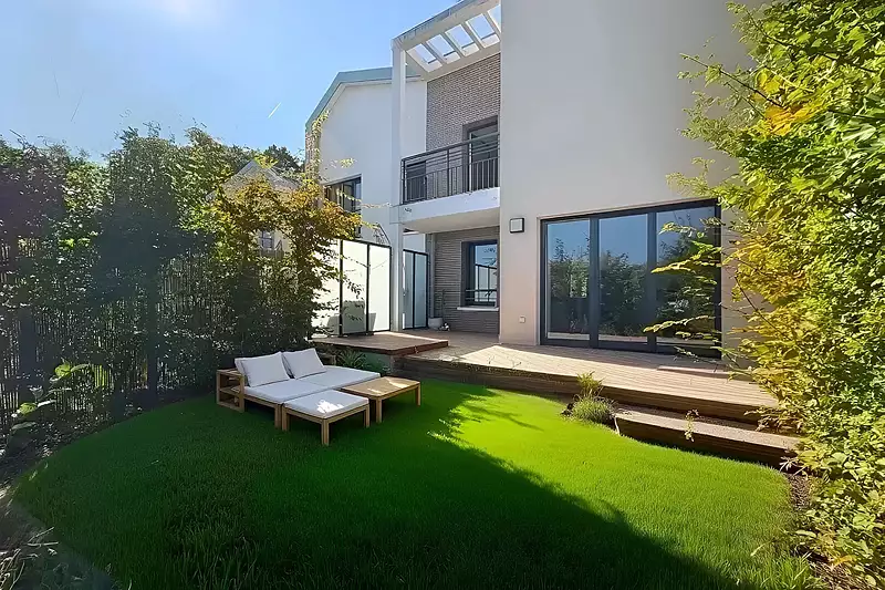 Au coeur de l'éco quartier nichée derrière la place commerçante, découvrez une allée bordée d'arbres et de cépées, le long de laquelle s'articulent nos maisons qui se suivent dans une séquence de formes, de teintes et de matériaux, qui donne a chacune sa propre personalité. Notre maison d'aspect architecte aevc sa toiture terrasse nous offre : -Au rez-de-chaussée : une entrée avec placards, une pièce à vivre de 50 m2 env avec cuisine aménagée et équipée, cheminée possible, l'ensemble ouvrant sur terrasse et jardin, une salle d'eau. A l'étage: palier desservant 4 belles chambres, dont une ouvrant sur balcon avec une très jolie vue, salle de bains, et WC. Double box. Prestation de qualité. Sous garantie décennale. (2.99 % honoraires TTC à la charge de l'acquéreur.)