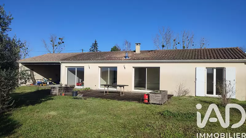 iad France - France Rossignol vous propose: PAVILLON PLAIN-PIED CONSTRUIT EN 2010, 116 m² - 4 CHAMBRES - CUISINE AMÉNAGÉE - CELLIER - SALON/SÉJOUR - JARDIN ARBORÉ 1900 m² env. - CARPORT
