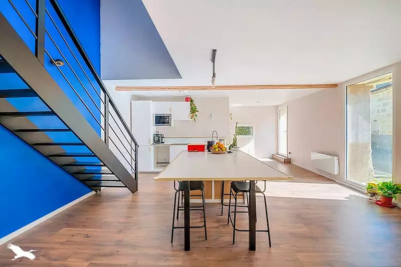 Proche du centre, maison en pierre dont une partie a été rénovée avec goût. Elle dispose en rez-de-chaussée d'une pièce de vie lumineuse avec sa cuisine, la buanderie et un wc. A l'étage, on trouve deux grandes chambres, une salle de bain, un wc et un espace bureau. S'ajoute un jardin sans vis-à-vis et des dépendances à rénover. Proposition d'aménagement virtuel non contractuelle en dernière photo.