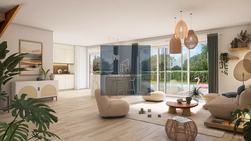 Dès l’entrée, le ton est donné: volumes généreux, lignes épurées et belle luminosité signent chaque espace. Le séjour, baigné de lumière grâce à de larges ouvertures, s’étend sur38m2, offrant un cadre chaleureux et accueillant pour vos moments de partage.