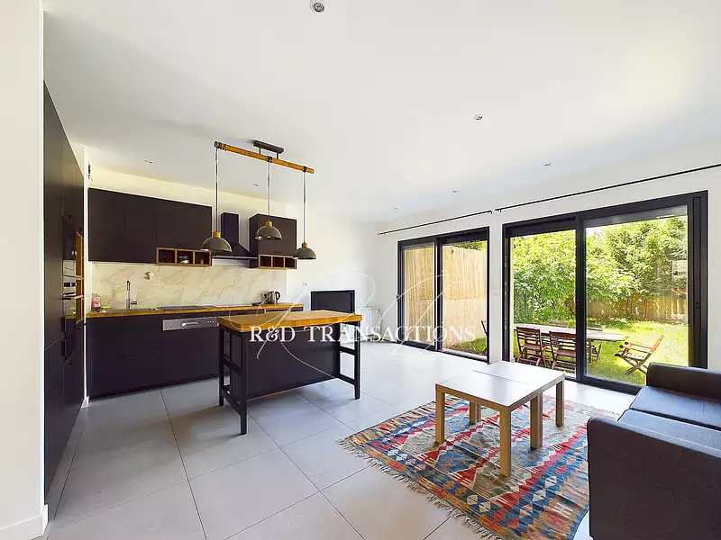 Vitry Sur Seine au sein de l'eco- quartier en plein essor des Ardoines en bord de Seine, à proximité de la ligne 15 du métro grand Paris, du RER C et du Tzen5, une maison neuve et traversante en pleine propriété, édifiée sur un terrain de 220 m2 composée au RDC d'une entrée , d'une salle à manger, d'un séjour avec cuisine ouverte aménagée et entièrement équipée s'ouvrant sur un grand jardin au calme et d'un WC. Au 1er étage, 3 chambres ( possibilité 4) , une salle de bain et une pièce d'eau toutes deux avec WC. Un double stationnement de voiture complète le bien . Excellent DPE ( C) Commerces au pied de la maison. Gare des Ardoines/ RER C à 750 m et T9 Wateau-Rondenay à 500 m. Usage familiale ou excellent plan co living ( taux rentabilité 8%) .
