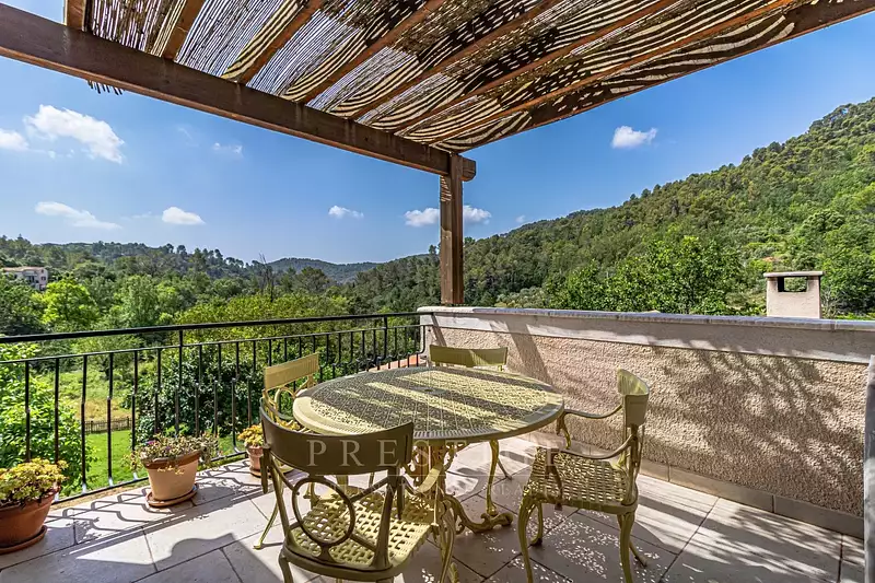 Claviers, nous vous proposons une maison au calme absolu, dans un cadre exceptionnel loin des nuisances de la vie citadine, environnement campagne sans réel vis-à-vis. Elle possède 5 pièces et, est orientée sud. 122m² habitables sur 2 étages entièrement rénovés en 2017 sur un magnifique terrain de 5614m² en restanques, avec une source naturelle (eau potable), des arbres fruitiers, un potager, un bassin en pierres et une rivière qui longe la propriété.
