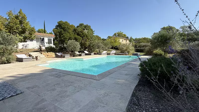 Posée sur un terrain plat de 4 300 m2, cette propriété s'entoure d'oliviers et d'arbres fruitiers offrant ombre et fraîcheur. Chaque soir, le spectacle des couchers de soleil sur les vignes environnantes vous promet des instants d'exception.