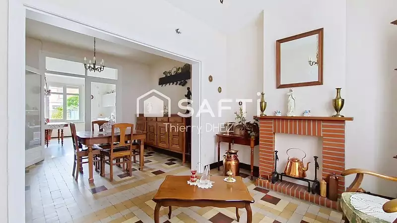 Maison de ville mitoyenne de 117m² habitables, idéalement située dans le secteur recherché de la place Jeanne d’Arc, direction Bailleul, à proximité immédiate des commodités et de la gare. Vous découvrirez au rez-de-chaussée une entrée traversante, un séjour lumineux avec cheminée décorative, une vaste cuisine de 20m² à aménager donnant sur le jardin, une salle de bain, des WC indépendants, un cellier de 10m², un garage de 21m² avec accès intérieur, ainsi qu’une cave saine de 17m². À l’étage, trois chambres de 11,50m², 11,90m² et 24,37m², complétées par une pièce supplémentaire pouvant faire office de bureau ou de future salle d’eau. Les combles, d’environ 60m² au sol, sont aménageables et déjà dotés de trois velux. À l’extérieur, vous profiterez d’un jardin clos de 115m² avec une dépendance de 8m². Chauffage central, double vitrage, volets roulants, raccordement au tout-à-l’égout. Maison à fort potentiel, dans un secteur calme et recherché. Pour tout renseignement ou pour organiser une visite, je suis à votre disposition.