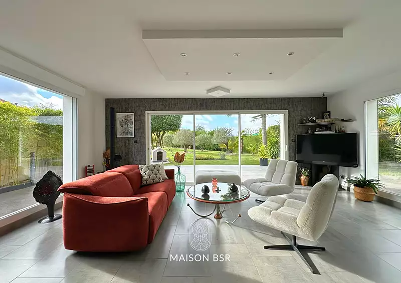 LA CHEVROLIERE Située dans un secteur calme et recherché de la Chevrolière , cette maison de plain-pied lumineuse de 117 m2 est en excellent état, réalisée avec des matériaux de qualité. Plus qu'à poser vos valises. Elle offre une belle pièce de vie de 60 m2 conviviale et chaleureuse avec poêle à pellets et cuisine aménagée/équipée. Le salon/séjour s'ouvre sur la terrasse donnant sur un magnifique jardin. Côté nuit , la maison dispose d'une suite parentale avec salle d'eau attenante , deux chambres confortables, une seconde salle d'eau et wc séparés. Profitez d'un jardin paysager de 1256 m2 clos et arboré , avec terrasse bien exposée, jacuzzi , grand garage de 40 m2 attenant à la maison et deux dépendances de 20 m2. Transport scolaire au pied de la maison. DPE C Situé 15 mn de l'aéroport et des grands pôles d'entreprises. Pour plus de renseignements contactez Chrystèle 06 31 09 91 48 (4.74 % honoraires TTC à la charge de l'acquéreur.) Chrystèle EDET (EI) Agent Commercial - Numéro RSAC : - .