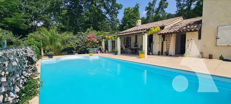 RETOUR A LA VENTE ! Lorgues, maison de 117 m² avec studio indépendant, piscine et bastidon sur terrain arboré de 2 369 m². Située à l'entrée de Lorgues, dans un environnement résidentiel calme, cette propriété propose un cadre de vie agréable, alliant confort, espace et potentiel d'aménagement. La maison principale 117 m² habitables Elle se compose d'une entrée fonctionnelle avec un vaste espace dressing, distribuant : - Une première chambre de 13,14 m² avec sa salle d'eau privative et son dressing. - Une seconde chambre de 13,47 m² équipée de placards intégrés. - Une salle de bains indépendante de 5 m². - Un toilette séparé de 1,63 m². La partie jour offre un séjour lumineux de 35 m² prolongé par une cuisine indépendante de 11,60 m², complétée par une arrière-cuisine de 5,88 m². Une terrasse ombragée de 20 m² vient prolonger les espaces de vie vers l'extérieur. Sur la gauche de la villa et accessible indépendamment, un studio de 15m² composé d'une chambre, de sa salle d'eau privative et son WC. Les extérieurs, terrain, piscine et dépendance. Le terrain de 2 369 m², entièrement clos et arboré, accueille une piscine traditionnelle de 9,5 x 4,5 m (liner en bon état, pompe neuve). Une dépendance de type bastidon de 10 m², raccordée en eau et électricité, permet d'envisager divers usages : atelier, bureau, chambre d'amis ou espace de loisirs. Un carport à l'entrée complète les prestations, ainsi qu'un local en sous-sol situé sous la piscine, idéal pour le rangement du matériel d'entretien ou de loisirs. Menuiserie double vitrage bois. Tout à l'égout. Abris bois en carport. Foncier disponible pour agrandir. Un bien fonctionnel, bien entretenu, situé à proximité immédiate du centre de Lorgues, bénéficiant d'un beau potentiel pour un projet de résidence principale, secondaire ou d'accueil. Contact et visites : Lydie Blanchet au 06 77 61 32 91 Lydie BLANCHET (EI) Agent Commercial - Numéro RSAC : 949 333 777 - DRAGUIGNAN.