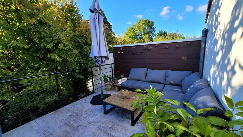 Une superbe terrasse, invitant à profiter des beaux jours en toute tranquillité.