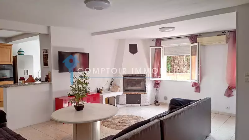 La maison est équipée d'une climatisation réversible, d'une cheminée avec insert, de volets roulants electriques ainsi qu'un grand garage de 19m2.