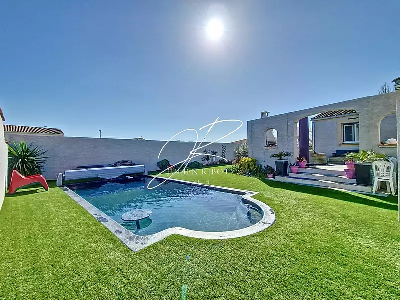 À l'extérieur, vous trouverez une belle piscine 8 x 4 équipée d'un volet roulant et d'une balnéo, offrant ainsi des moments de détente inoubliables en toute intimité. Vous profiterez également d'une grande terrasse carrelée, équipée d'un barbecue. Un puits, un potager et un jardin sans entretien complètent cet espace extérieur parfaitement aménagé. Grand garage de 23 m².